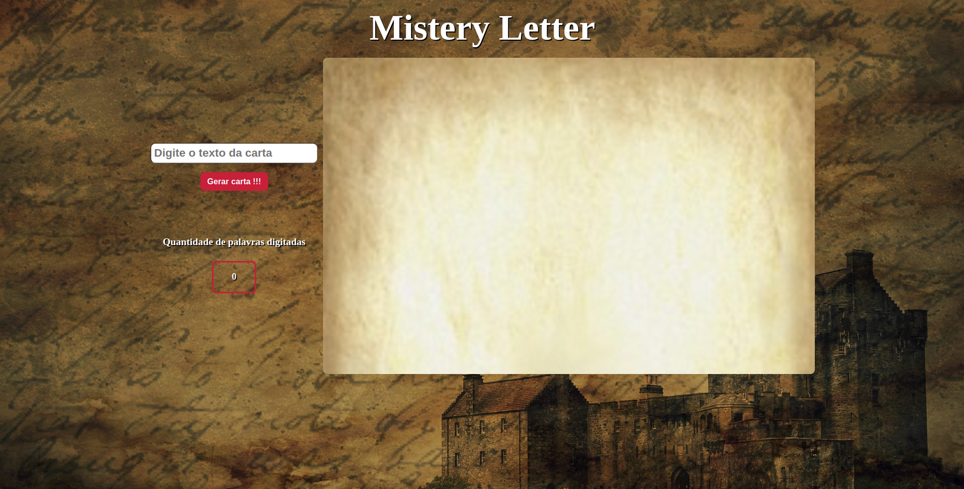 Neste projeto ao digitar uma frase, cada palavra vira um recorte semelhante a de uma carta misteriosa.