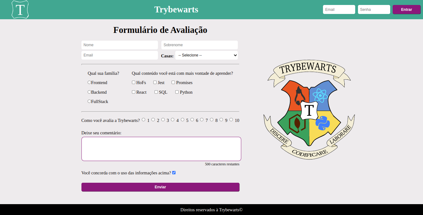 Este foi meu projeto final no 6° Bloco na #Trybe onde o objetivo era criar um formulario, fazer validações, e praticar um pouco mais o Flexbox.